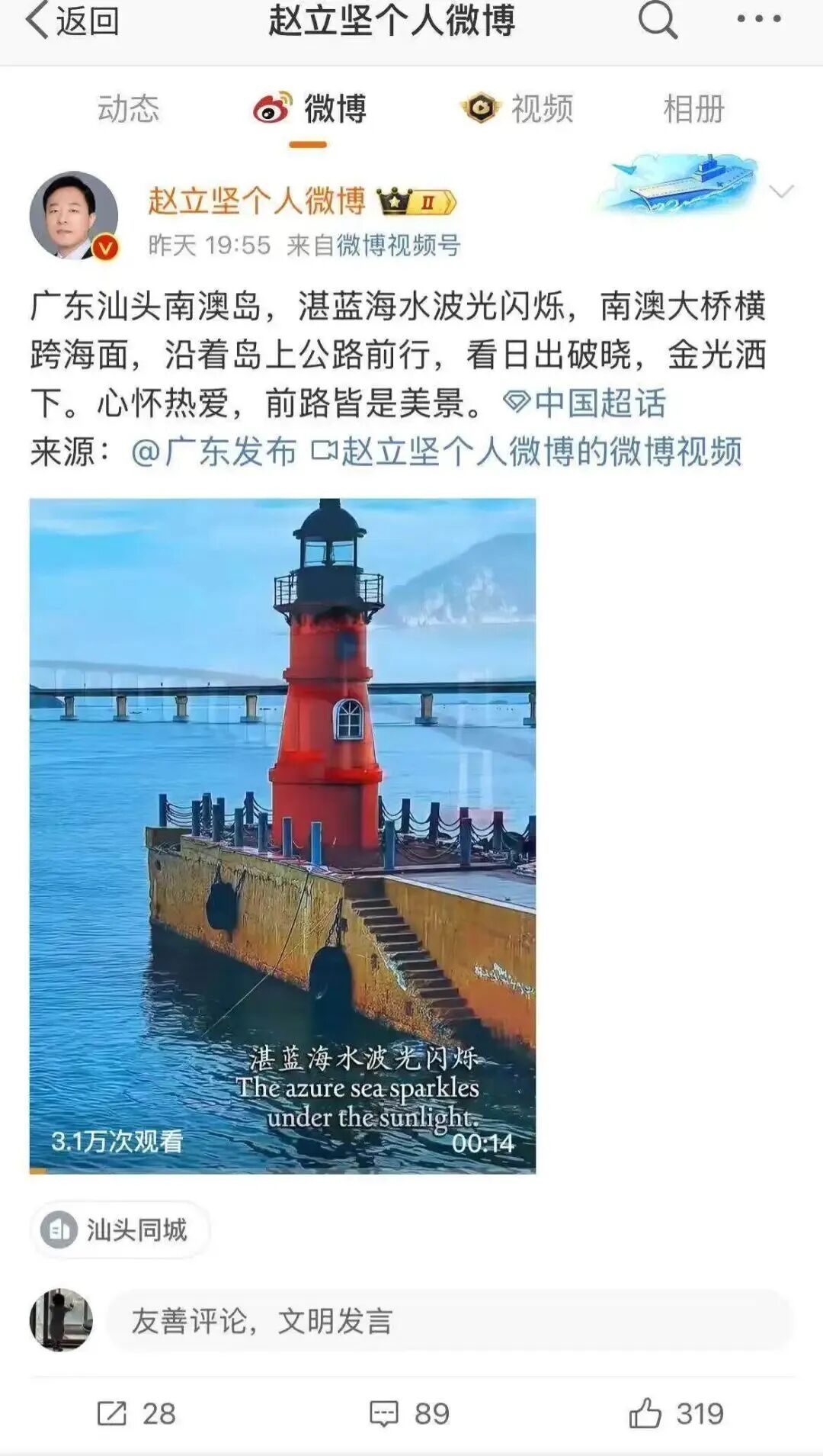 日前,外交部原发言人赵立坚在个人微博转发@广东发布 的南澳视频并实力“带货”,引得网友纷纷留言“种草”。