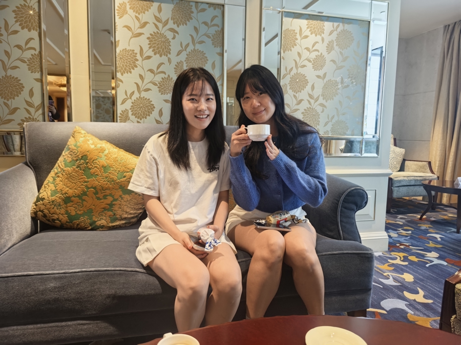 在上海大酒店入住3晚的韩国游客金恩菲和李珍元。 李宝花 摄