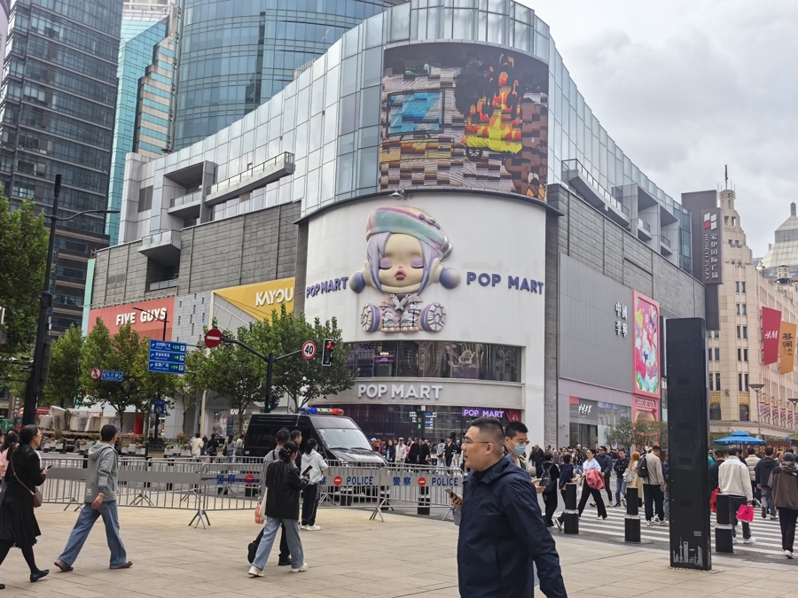 南京路上的泡泡玛特旗舰店颇受外国游客欢迎。 李宝花 摄