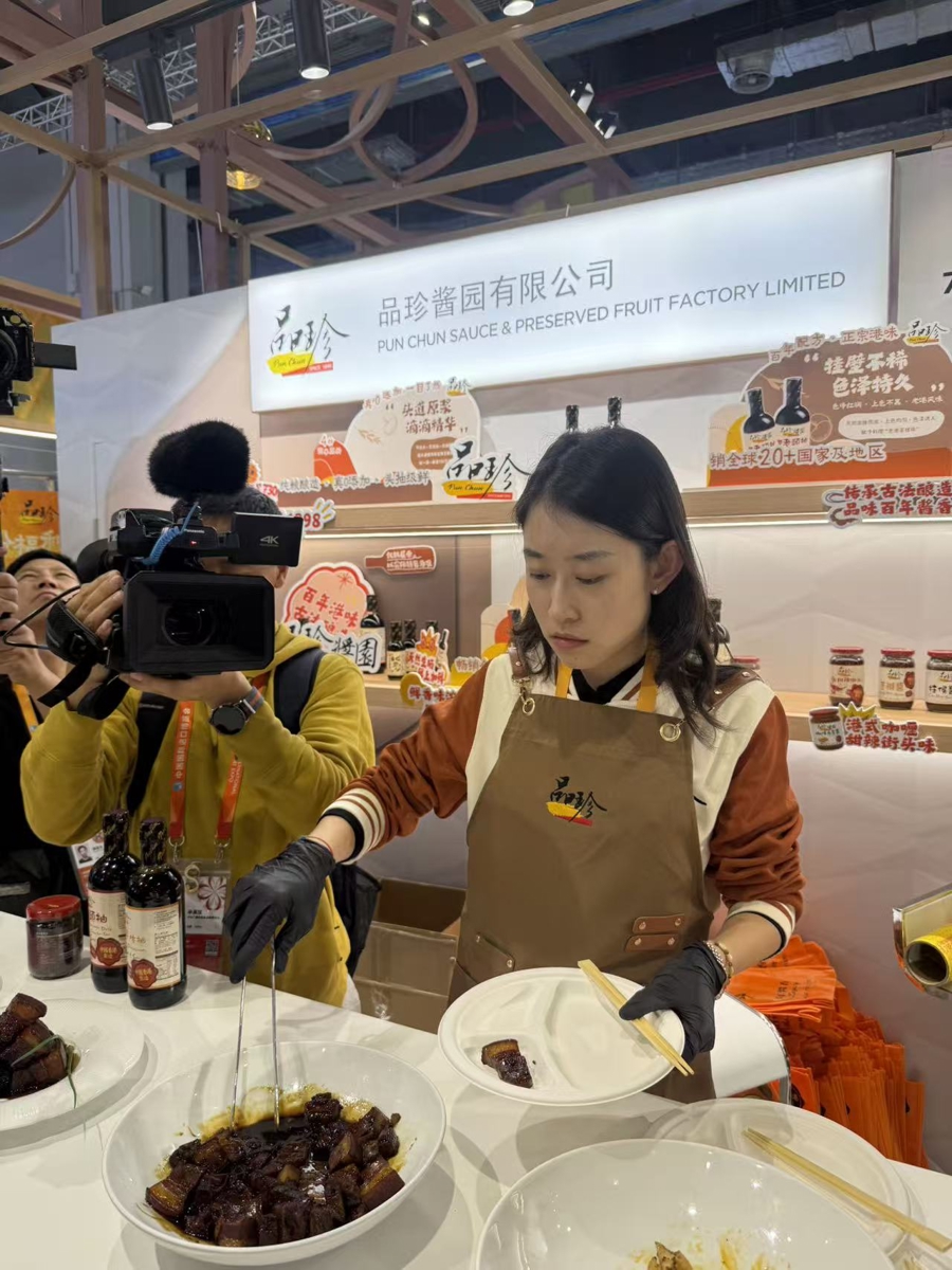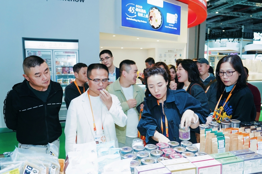 武义成是下午两点就来到馆内,一直逛到了晚上,乳制品、调料、生鲜等都是他的涉猎范围,觉得意犹未尽。“我一进门就看到了加拿大的蜂蜜,买了一点准备带回去试一下,它的味道和国内一些蜂蜜不同,确实能吃到最原始的蜂蜜味道。”他还看到了来自中国香港的“天菁味粉”,这是餐厅里一直在用的一种调料,以前是供应商送货,此次在进博会里加了区域运营总监的微信,未来可以直接对接,进一步降低原有的食材成本。