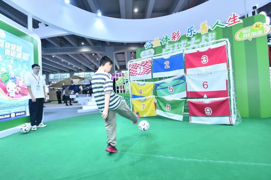 互动体验区气氛热烈,“点球大战”项目尤为火爆。观众化身“绿茵射手”,一次次射门引发阵阵欢呼,体育激情在此刻尽情释放。